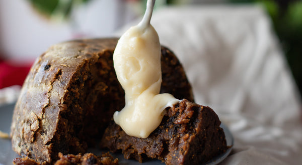 Rich dried fruits soaked in brandy, stout, rum, and festive spices, then baked in a classic ceramic bowl. Wrapped in canvas with a festive bow — perfect for gifting.